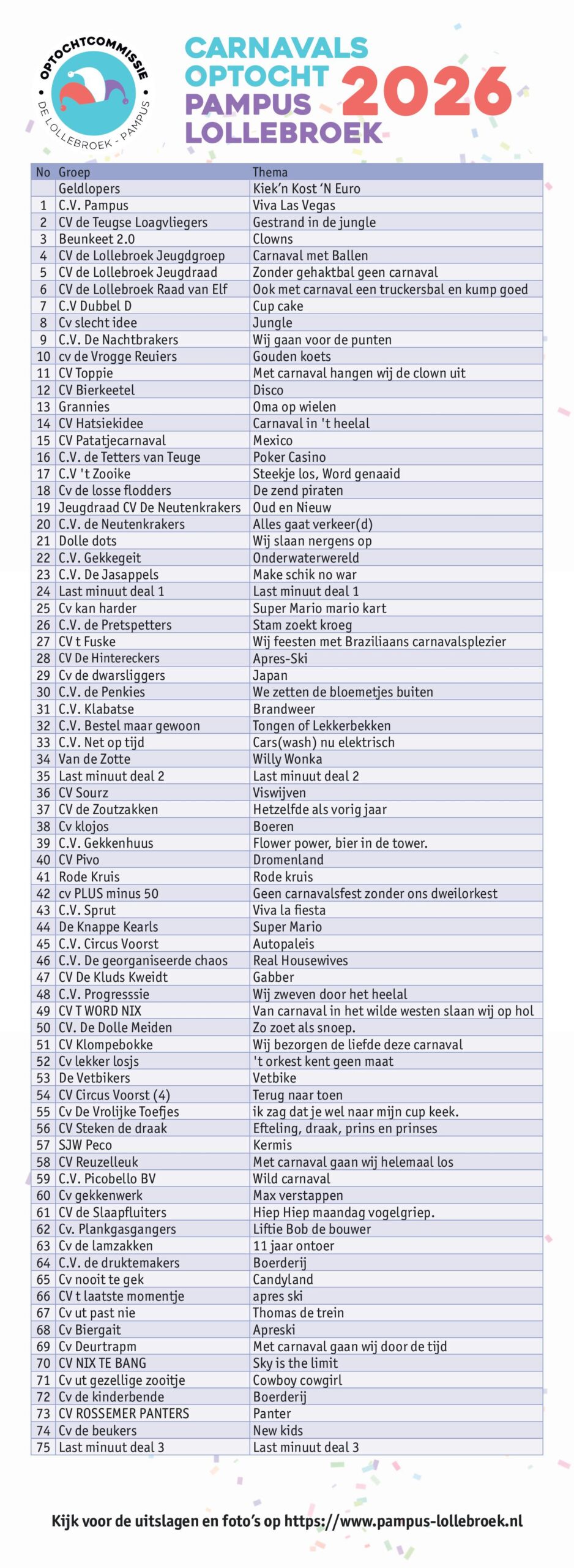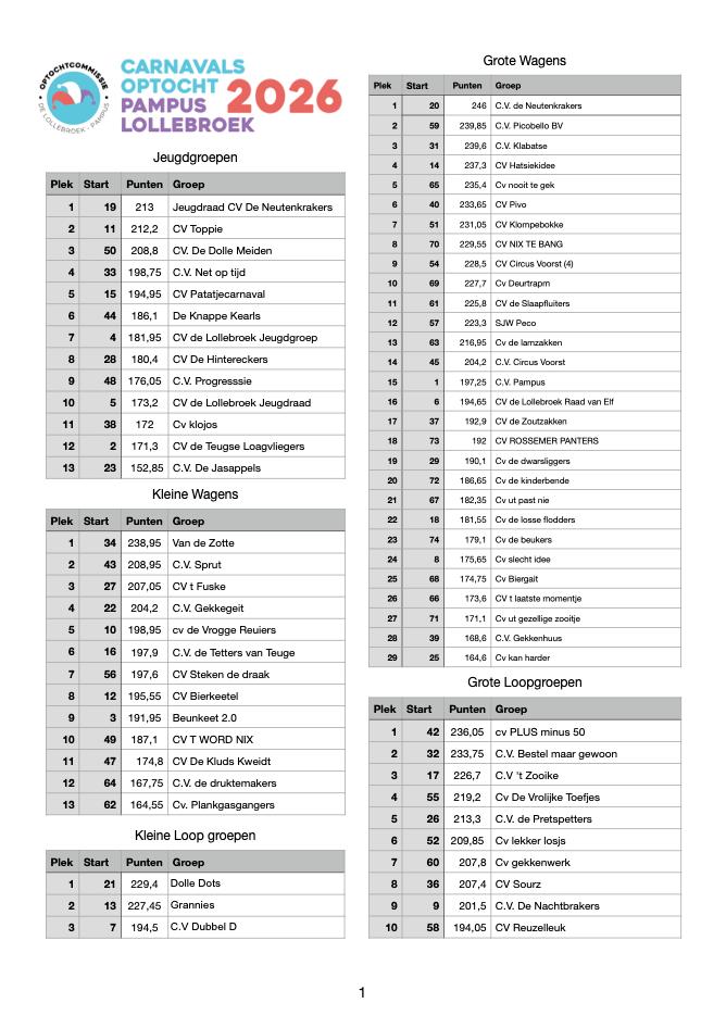 Startlijst optocht 15-02-2026